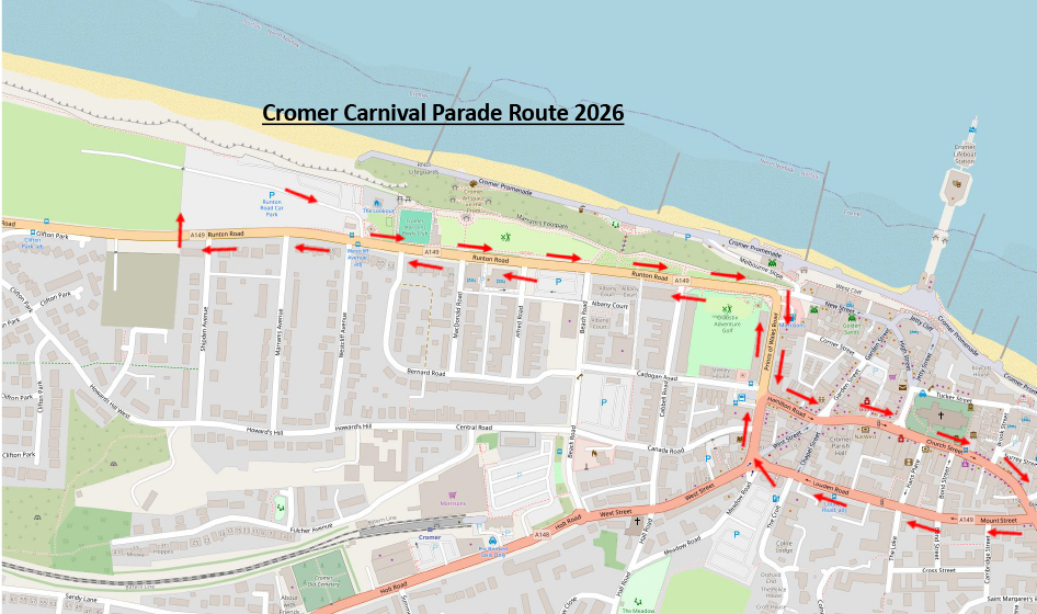 In 2025, Cromer Carnival trialled a new parade route starting on Overstrand Road and finishing on the Carnival Field. Following a debrief in September 2025, the committee agreed to seek feedback from residents, visitors, participants and partners to assess whether this new route should be adopted.
